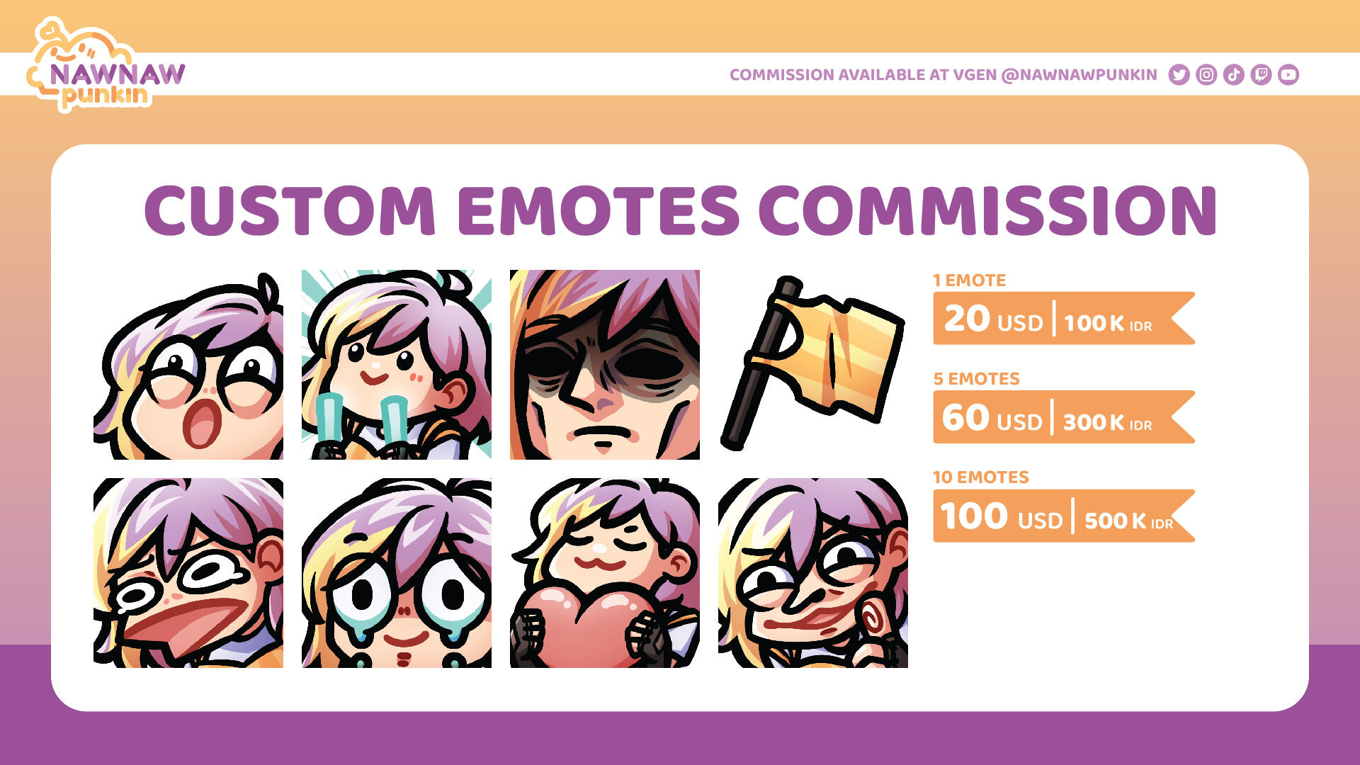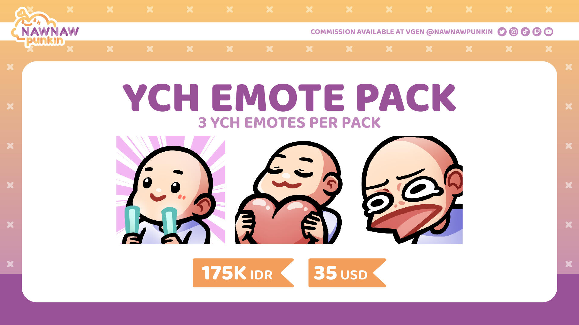 | 3 YCH Emote | 35 USD | 175K IDR |